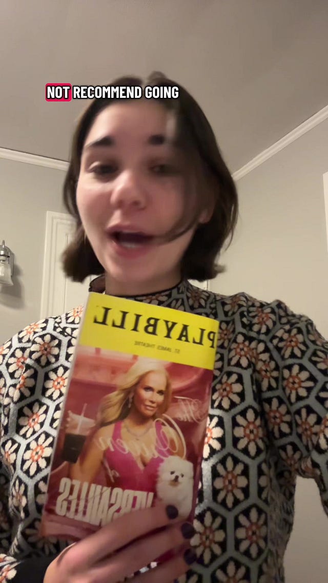 -All In earlier this year? I’ll say it. I liked it. It was cool to see stars on stage, I thought the stories were funny, and it was a nice change of pace from the normal motions of Broadway. Was it a top 10 show for me? No. But do I regret seeing it? Absolutely not. I will, probably, try to see All Out in January or February to get a cast lineup I like. Which I guess means I won’t be seeing it “before 2026” if that lets me escape from the wrath of your anger.
